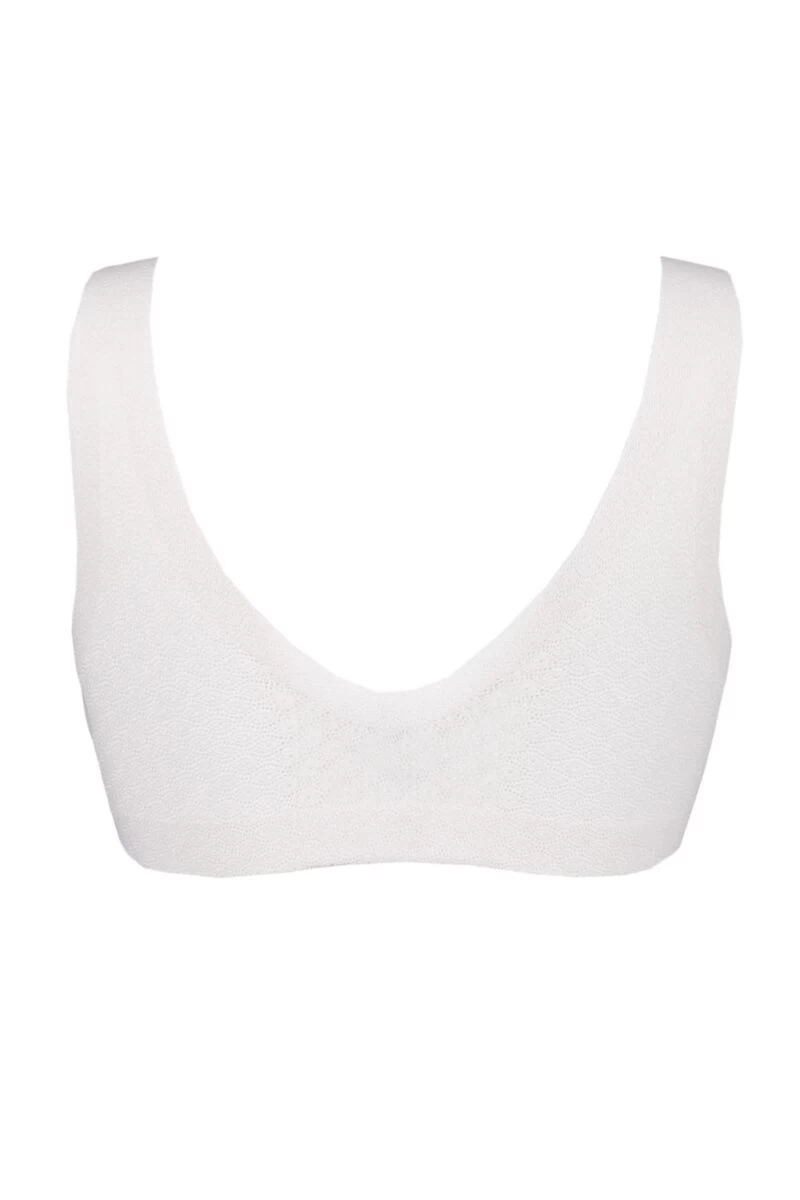 The bralette has a v-neckline with a pretty shaped edge, and a plain v-back, seamlessly joined with flat dot bonding technology. It has silhouette enhancing, softly padded lift cup pads, which are fully removable. A matching high waist brief is also available.