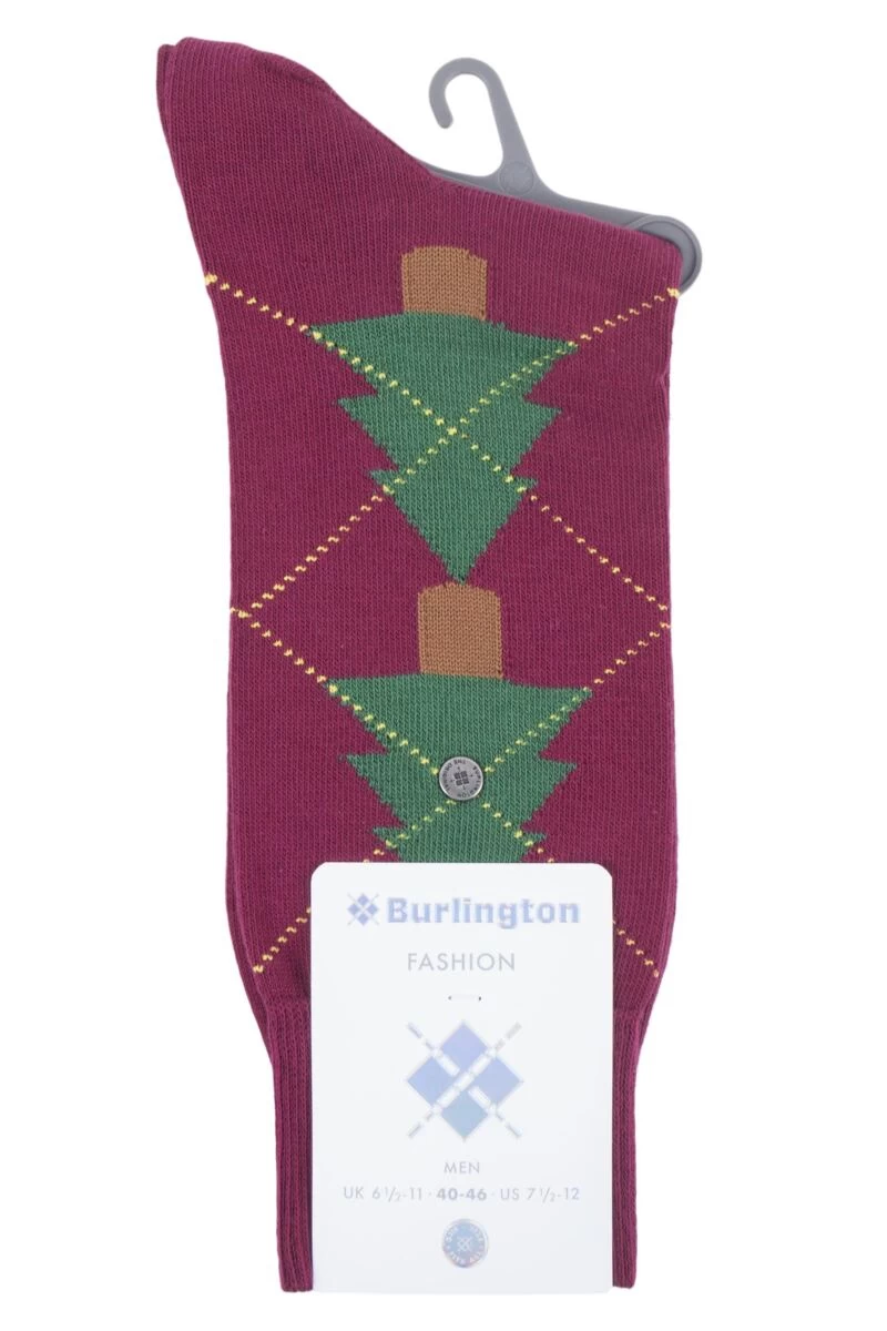 This cotton rich pair of gent’s Christmas socks is a half calf length, woven in a fine gauge and Smooth Linked Toes for smooth seams. punctuated with a branded stud. Burlington Christmas Tree Argyle Cotton Socks have the classic Burlington metal stud secured to one ankle, centrally in the design.