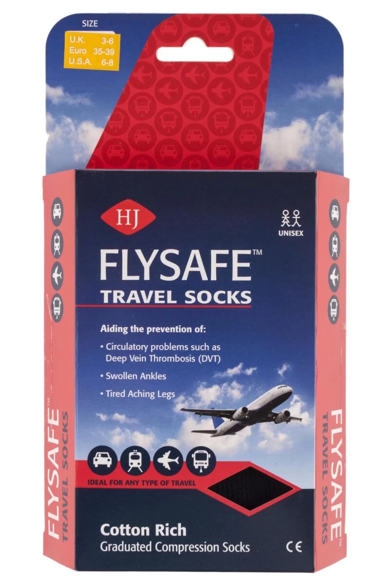 HJ Hall Flysafe Cotton Flight and Travel Socks are compression wear that have been specially designed by the longstanding sockmakers to use as an aid in the prevention of DVT in long distance travel, whether it is by plane, train or in a car. Flysafe are discreetly styled to look like ordinary socks under jeans or trousers. The compression effect can also assist in relieving tired, swollen or aching legs.