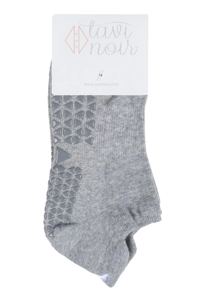 Designed for both beauty and function, along with a comfortable fit, Tavi Noir Full Front Grip Yoga Organic Cotton Socks, nicknamed ‘Savvy’, are low rise and designed to hug gently below the ankle. The technical triangle pattern soles, created from BPA-free, high density PVC, grip smooth surfaces and sticky mats to safely give you stability as you move through your barre, Pilates, dance and yoga routines. The pattern is actually based on the performance aspects of a surfboard traction pad.