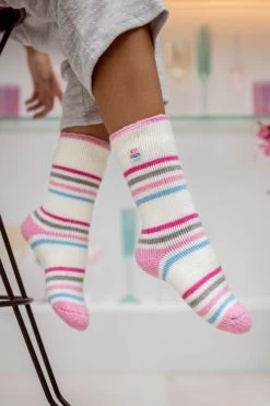 These thick, super-soft striped socks are completely lined with the deepest, snuggliest long brushed Heat Holders fleece to keep feet fabulously warm. The open gift box is designed with fun spot-varnished word balloons with more affectionate messages. Choose from four loving phrases that feature as soft, satin badges on the legs, and tell someone that they are absolutely, without-a-doubt the “Best Mum Ever”, “Love You Mum”, “Best Grandma” or “Best Nanna”. The pack includes a useful gift tag.
