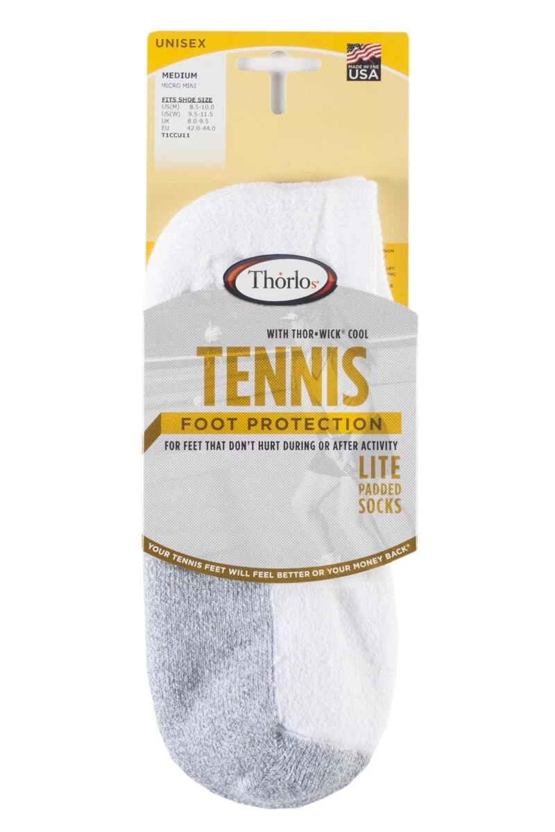 Engineered and constructed in the USA to provide better protection from blisters and foot pain for tennis players, lightly padded Thorlos Lite Tennis Micro Mini Trainer Socks sit low on the ankle. These socks, made from the company’s special Thor-Wick Cool fabric, have better moisture wicking abilities for drier, cooler feet.