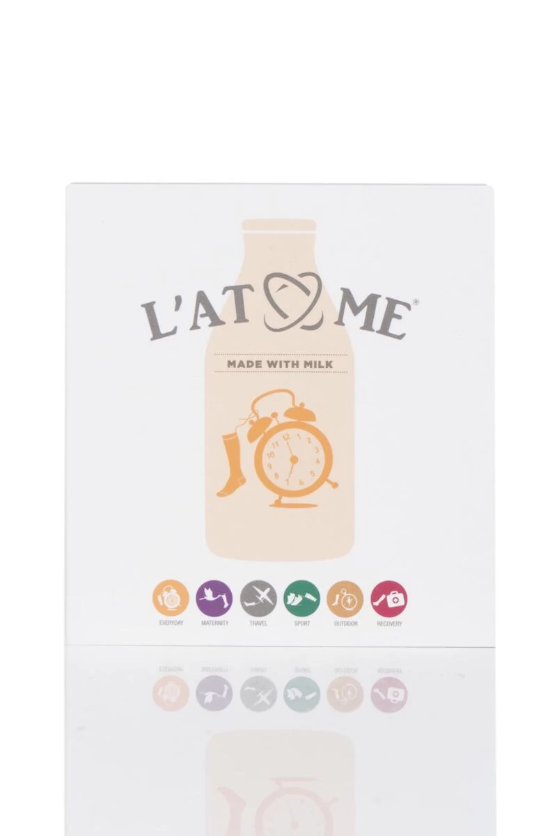 Atom Milk Compression Socks use innovative, patent pending Lanati H1 fibre, a naturally-based fibre created from pure drinking milk protein that is soft, glossy and moisturising milk fibre fabric that is also sanitising and anti-microbial.