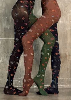 Black as night, with colourful flowers and vines trailing all over them, Trasparenze Platino Floral Knit Opaque Tights are bold and beautiful, designed to be the main attraction of your outfit. A shimmery gloss sheen gives the floral design even more impact across these matte 80 denier tights, enhancing the colours to embroidery levels of brightness.