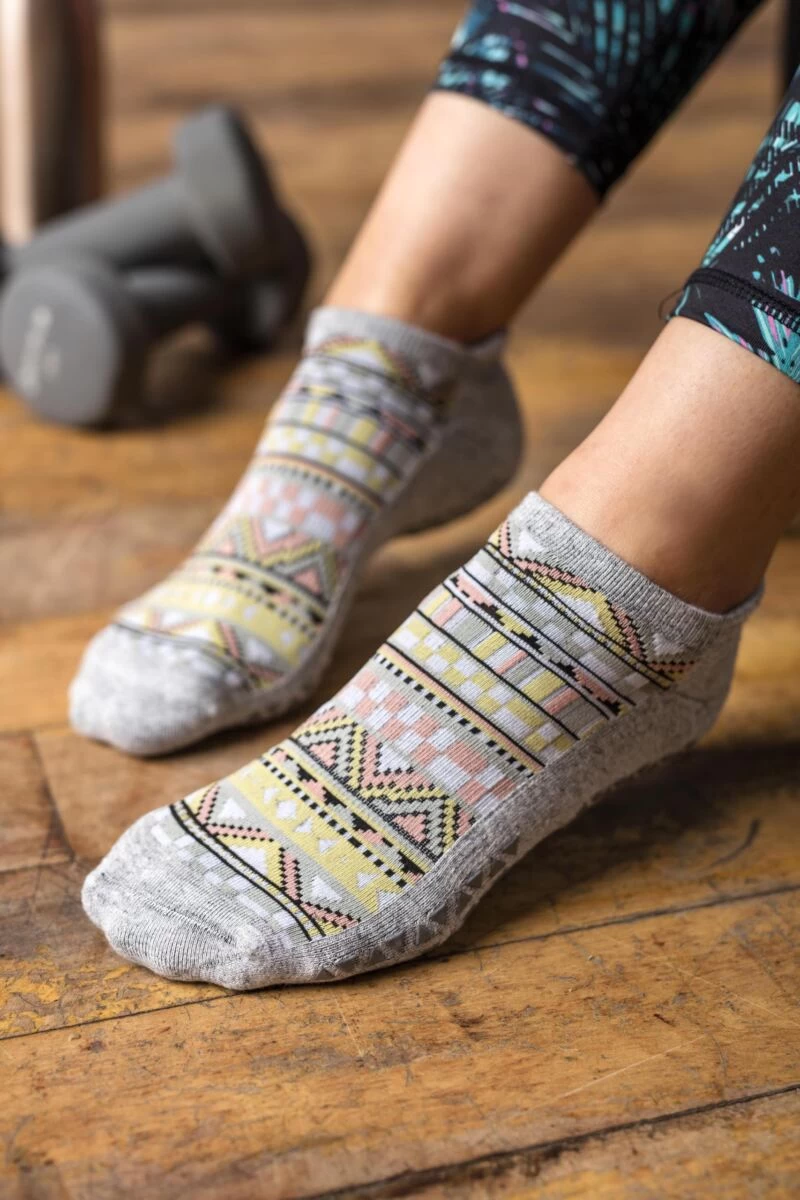 Soft style and protection for your floor classes and routines. Tavi Noir Savvy Organic Cotton Low Rise Yoga Socks sit below the ankle. Helping you grip with a non-slip tread pattern as you move, balance and hold your pose during all dance, barre, Pilates, and yoga classes.