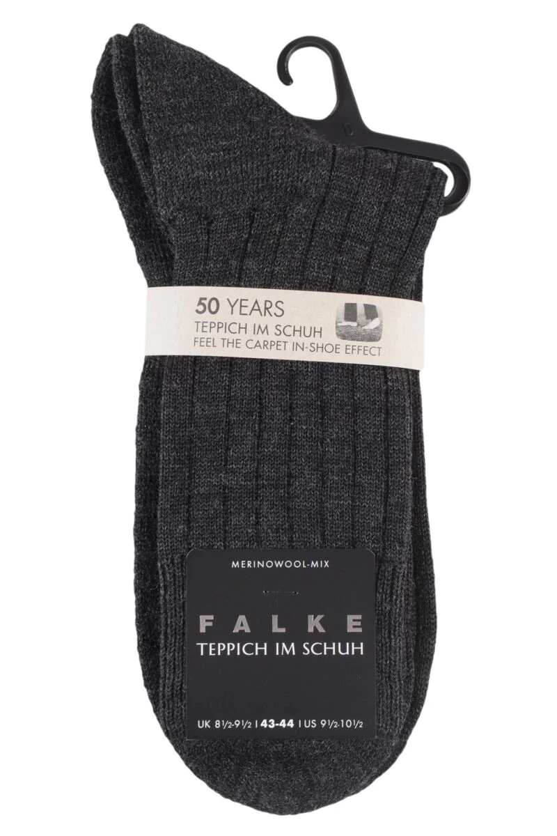An original, now celebrating its 50th anniversary, the FALKE ‘Teppich im Schuh’ is unchanged from its initial concept, developed as a ‘worker’s sock’ in the early 60s. Falke Teppich Im Schuh – ‘Carpet In Shoe’ – Virgin Wool Ribbed Socks are made from climate-regulating merino wool, breathable and anti-bacterial, with a plush padded sole that protects the underfoot, toe and heel.