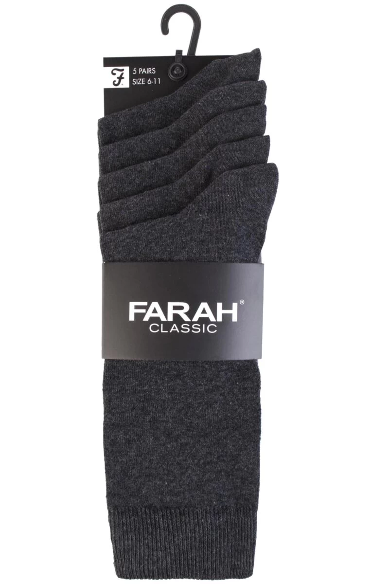 You’ll get a variation of contrasting colours to take you through the working week (you get two days off, or we hope you do!) all half calf length and smooth legged with elasticated cuffs. The Farah brand name shows boldly on the soles of each pair.
