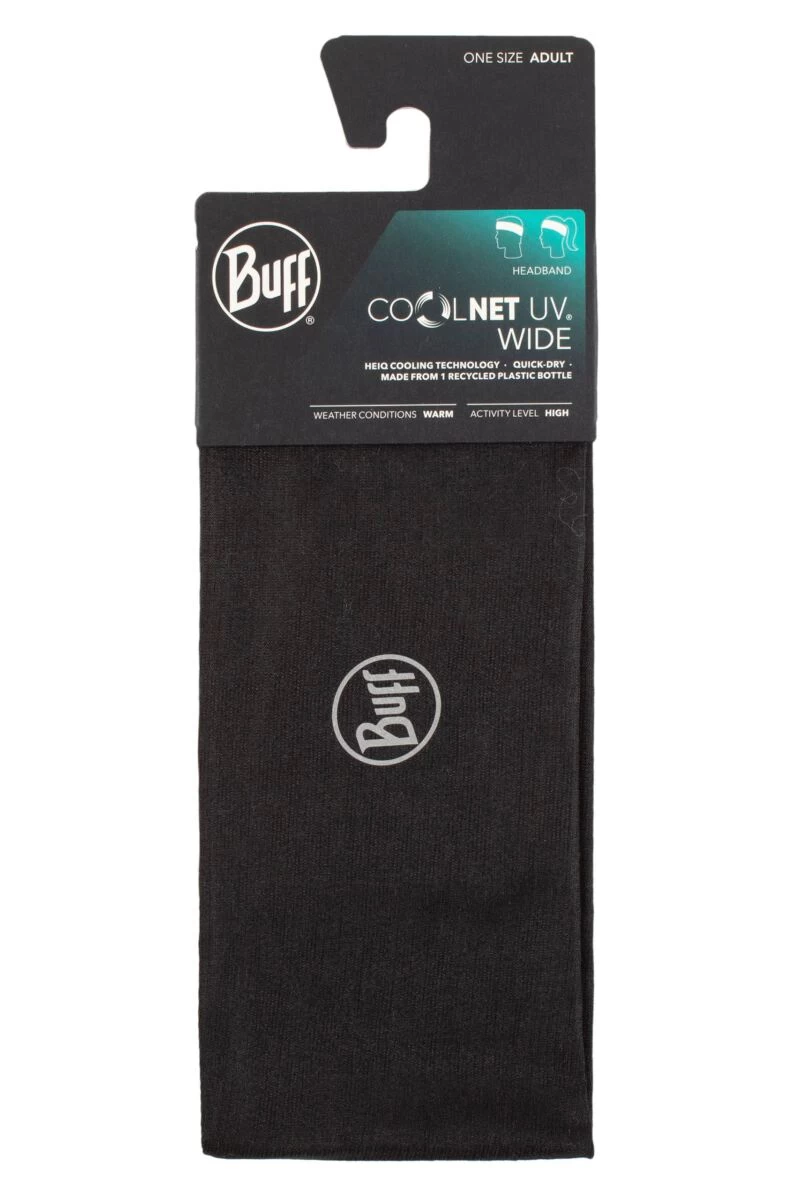 The BUFF UV CoolNet Wide Headband is made from 95% recycled Repreve performance microfibre and engineered with HeiQ cooling technology and with a Polygiene treatment added to resist odours. Bonded rather than stitched seams reduce irritation. It has UPF 50 sun protection built-in, and UltraStretch technology ensures a great fit for all.