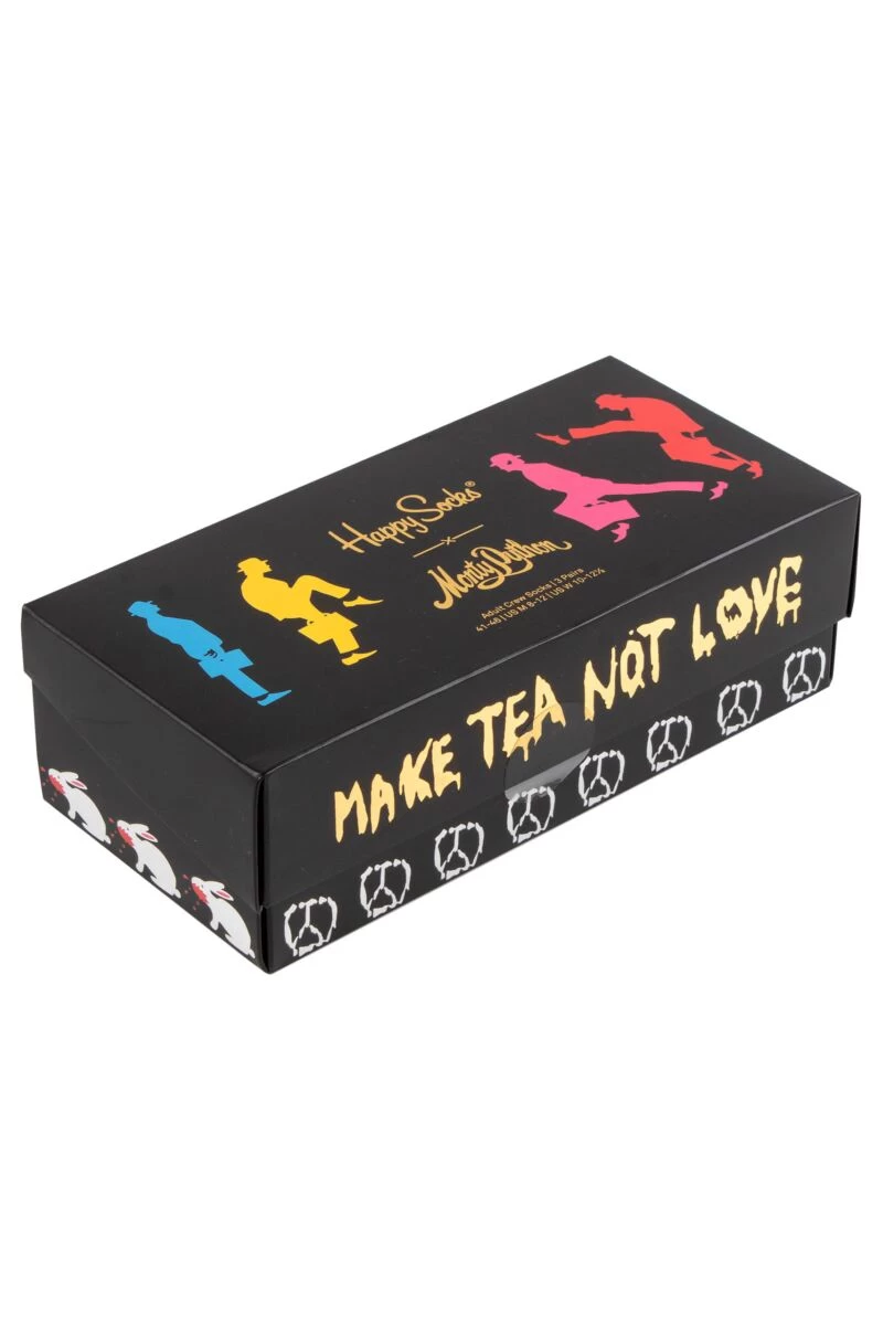 These socks are rather silly â and thatâs the point! For all lovers of the classic TV and movie comedy series, this Happy Socks Monty Python Gift Set brings you three pairs of prime Python-inspired socks, with distinctly odd motifs designed to hint to those in the know that youâre a fan of Monty Pythonâs Flying Circus. Inside a stylish, specially designed gift box are socks that hark back to the famous âHellâs Granniesâ sketch, the âKiller Rabbit of Caerbannogâ sequence from âMonty Python and the Holy Grailâ and the iconic âCupidâs Footâ from the animated titles of every episode.