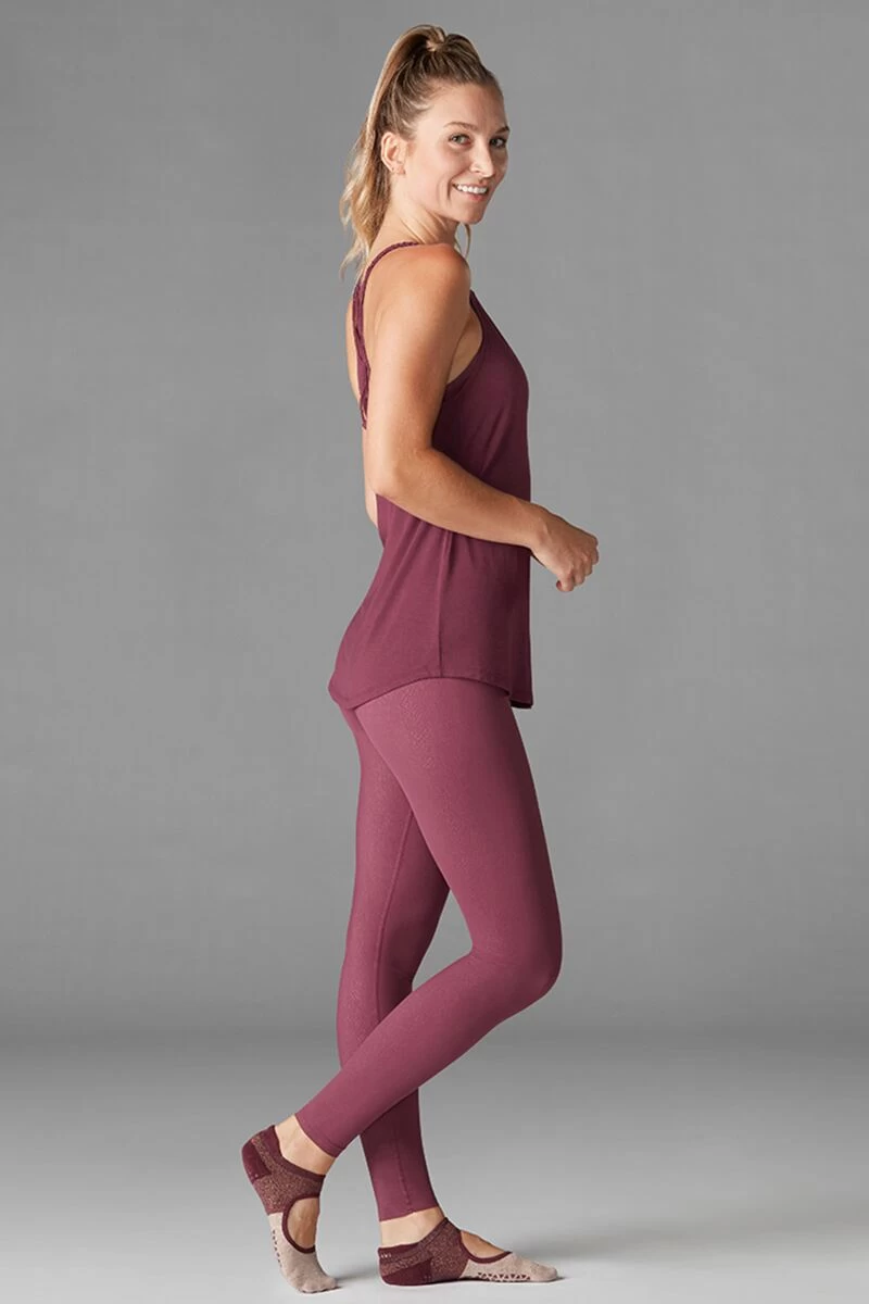 Pretty and super-feminine, featuring intricate braiding and with a multi-strap crossover to the back, this Tavi Noir Braided Strap Tank Top has great looks ideal for the studio or gym. The drape design styling includes a scooped neckline and slightly lengthened at the front and back for an even-more flattering fall.