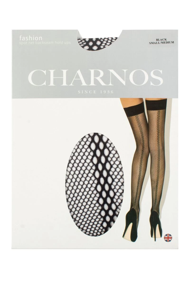 If you love a backseamed fishnet stocking, then these Charnos Spot Net Backseam Hold Ups could very well be a revelation for your hosiery collection. Made in Italy for this British company, these hold up stockings are a medium-sized net mesh, but instead of the classic solid backseam, this design features a wider-spaced ‘spotted’ net backseam detail set into it.
