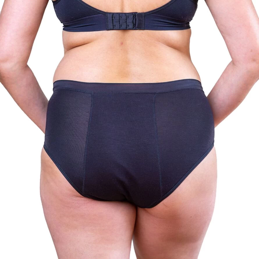 - High waist, full brief; Gusset panel padded from front to back of waistband; 4-layer absorbent pad; Breathable; Designed in Australia; Cold delicate machine wash