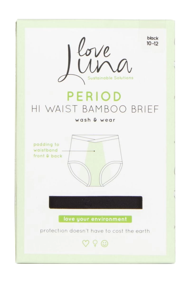 With complete, front-to-back absorbent padding, Love Luna High Waisted Bamboo Period Briefs have you covered for even the heaviest flow. The gusset panel, with 4 complete layers of inbuilt protection, fits fully from front waistband to back. These soft, breathable and comfortable briefs are perfect for wearing overnight, for new mums and designed to be leakproof even against heavy periods.
