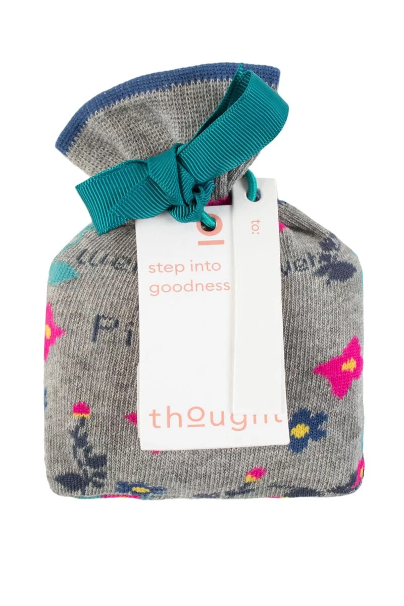Ready to be given as an affectionate gift āand including a handy gift tag and bow ā this pair of ladiesā Thought Viola Floral Organic Cotton Gift Bagged Socks are an easy and quick way to make someoneās day that bit brighter. These quality cotton rich socks are grey marl, decorated with a pretty flower pattern and with a sweet message on the sole that reads ā If you were a flower, I would pick youā. They come in a reusable knitted sack that has the same design as the socks. Perfect for filling with potpourri and using as a sock drawer fragrancer!