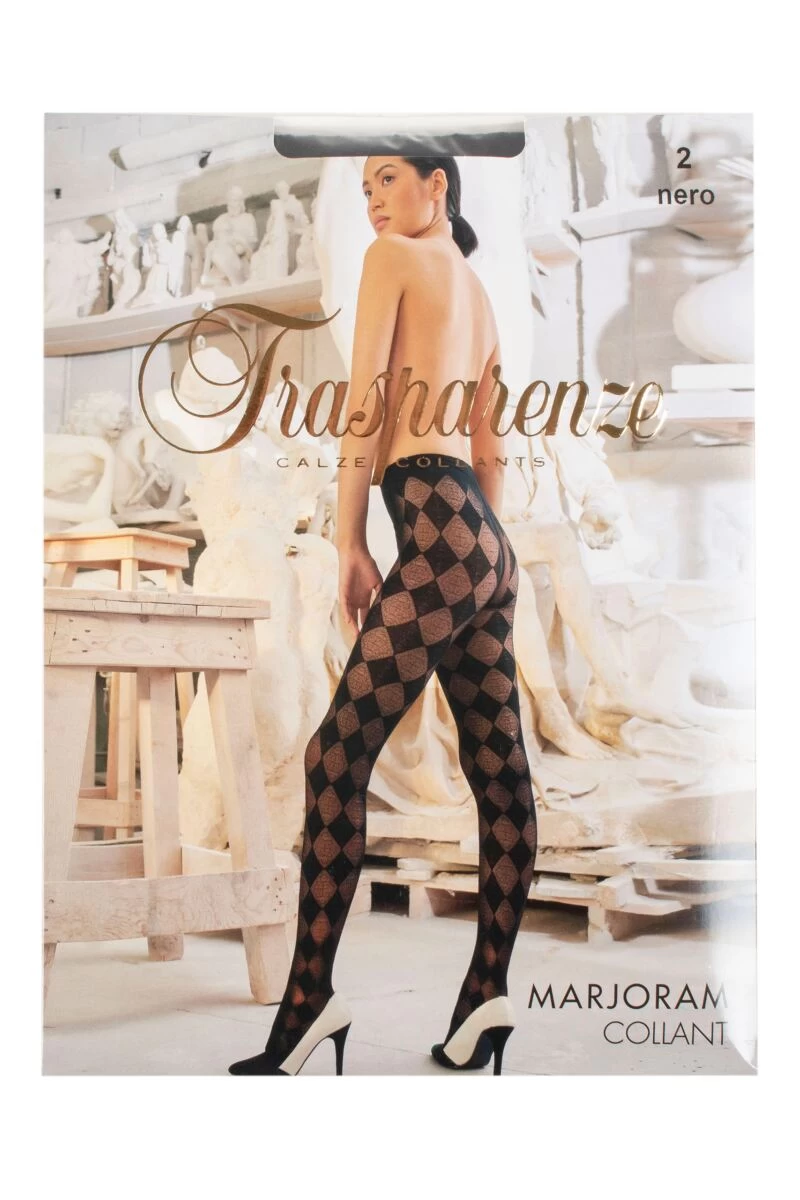 Even from a distance, these impact of these Trasparenze Marjoram Diamond Patterned Tights is unmissable. But get closer and you’ll appreciate the full design detail of these Italian-made tights. Each of the large harlequin diamond shapes has an underlying, curving and flowing baroque pattern.