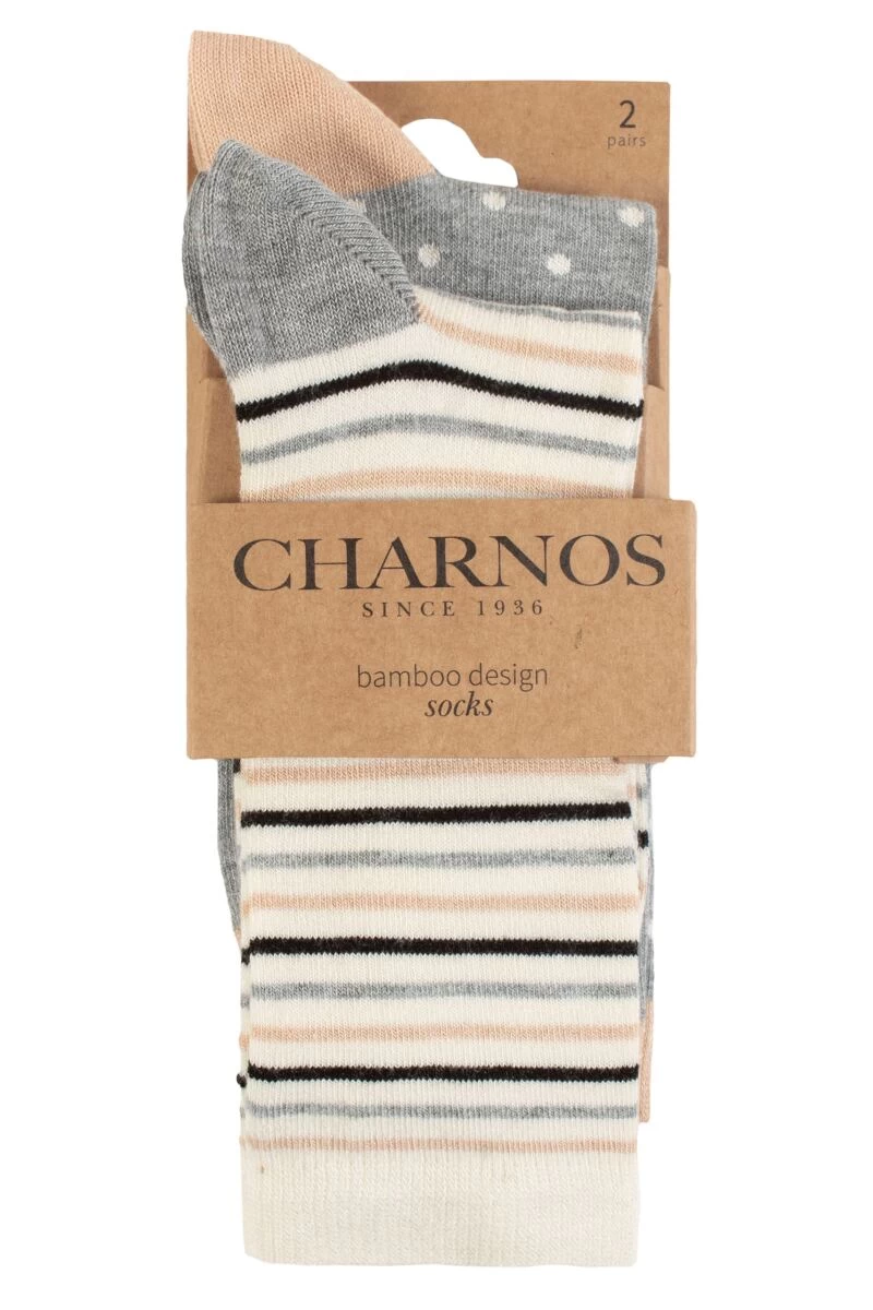 Simple and stylish in soft multicolour shades, gentle to skin in a bamboo rich blend, this two-pair pack of ladies’ Charnos Spot and Stripe Bamboo Socks deserves a place in your everyday sock collection. The socks are crew length, and have a lightweight, fine gauge weave with an enjoyably soft, silky feel.