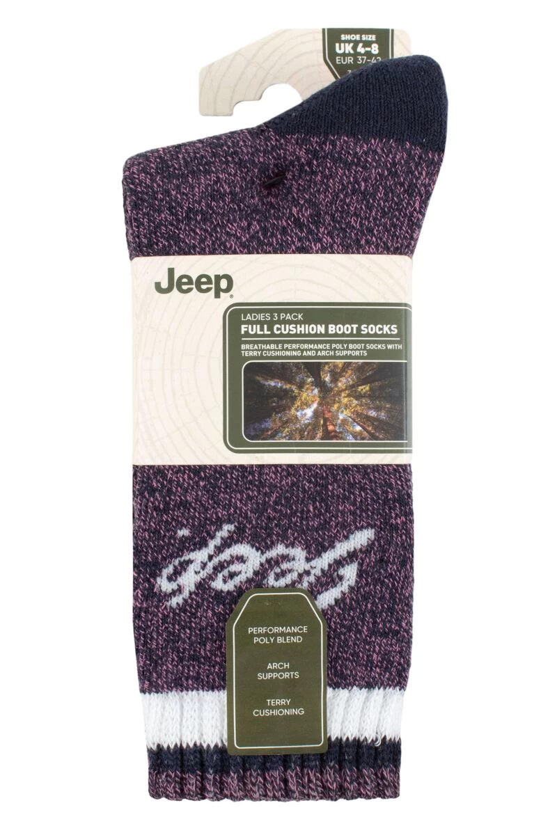 Attractively styled in a multicolour mix of marl and plain yarns, with sports stripe cuffs and Jeep signature branding, these ladies’ Jeep Performance Full Cushion Boot Socks are surpassingly lightweight, made using a blend of performance poly fibres and natural cotton, making them soft next to the skin but also durable for a range of pastimes and activities.