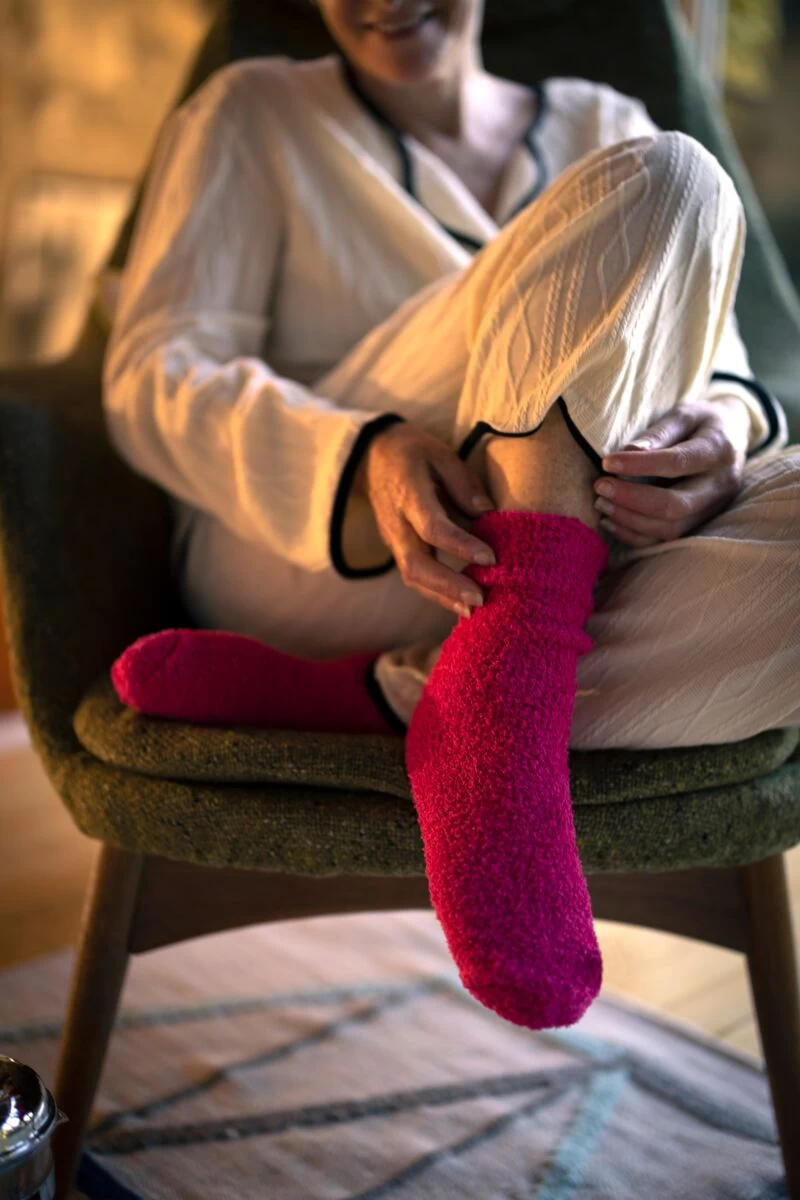 - Soft fleece feel; Breathable; Mixed colour set; Gift tag; Cosy lounge or sleep socks; Machine washable at 40°