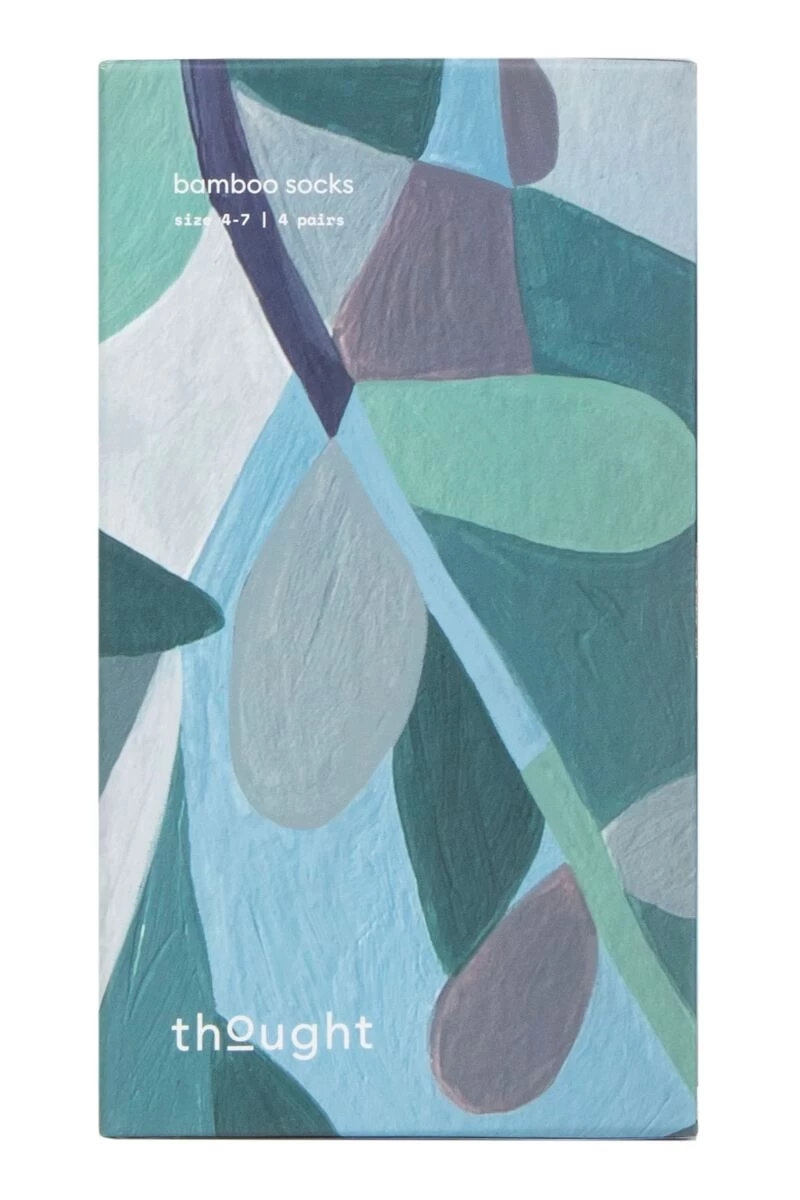 Led by a design showing a sweetly slumbering owl on a starry background, the designs of these four pairs of Thought Amaya Night Bamboo Gift Boxed Socks centre on star-scapes in all their colourful glory. These crew length ladies socks are pretty styles to grace anyone’s sock collection. They come packaged in an attractive drawer-type gift box that is intended to be reusable, and assembled using vegan glue.