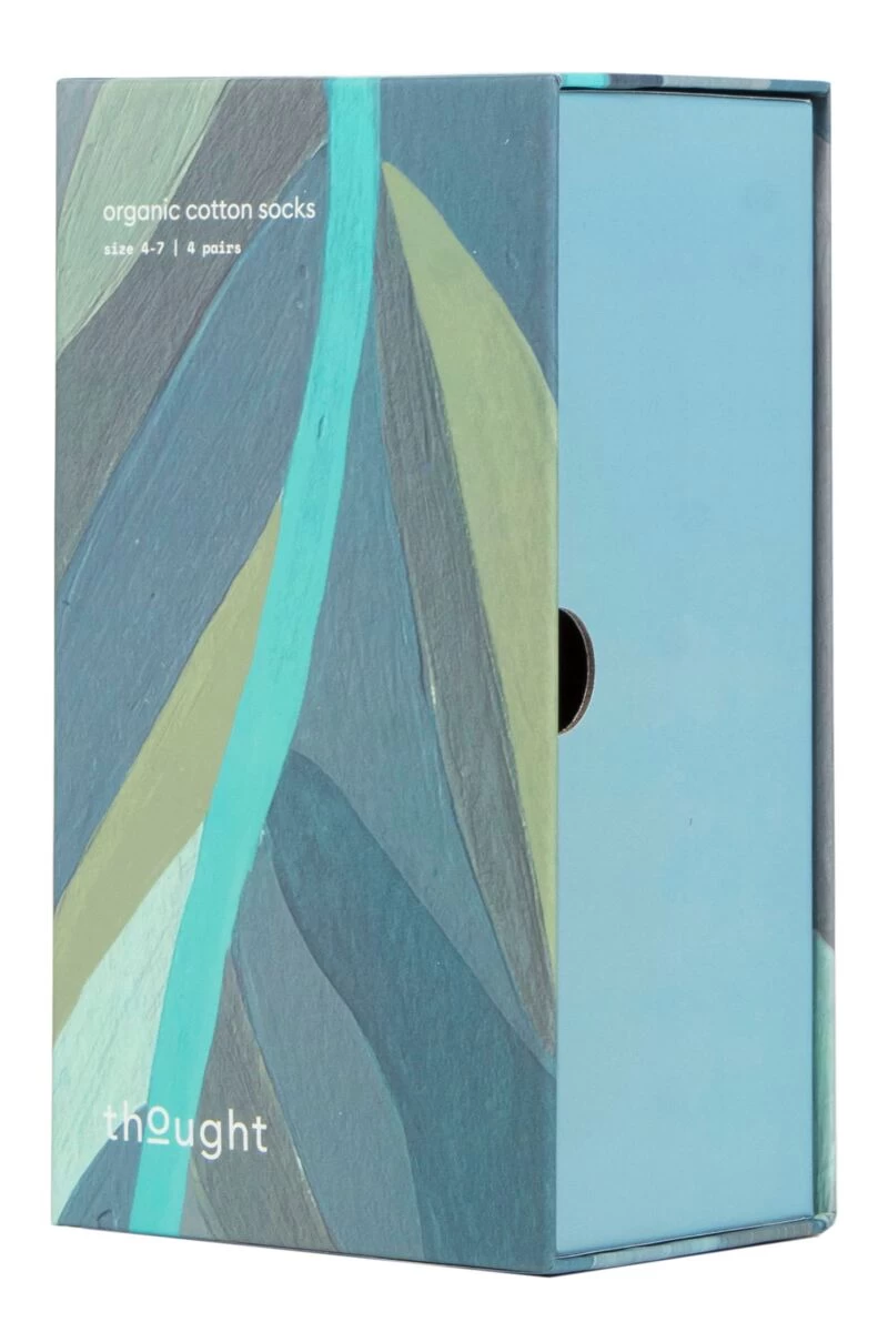 Anyone for a spot of tea? This Thought Fiona Organic Cotton Afternoon Tea Gift Boxed Socks set serves up a fun collection of ladiesā sock styles with a loose ācakes and cuppasā theme across the four pairs of fine gauge, soft and comfortable cotton rich socks. Ethically made with GOTS-certified organic cotton and a little recycled nylon added for durability, you can feel good in them and about them too. Even the gift box is intended to be reusable, and has been made with vegan glue.