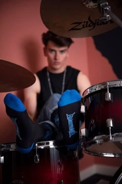 The socks themselves include two different designs featuring the nightmarish Megadeth mascot Vic Rattlehead, one pair with Megadeth’s classic logo and nuclear emblem in blue and a pair with a yellow nuclear emblem pattern, all on black backgrounds and fully woven in a soft, quality cotton rich fibre blend. The cotton blend is comfortable, cool and breathable, so no risk of Sweating Bullets in these when you’re out in the mosh pit listening to a Symphony of Destruction!