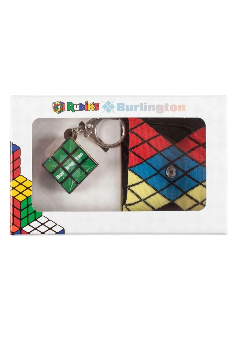 - Gift set of Rubikās cube-inspired argyle socks and an original Rubik’s Cube keyring; High-quality box; Burlington clip; Machine washable at 40°