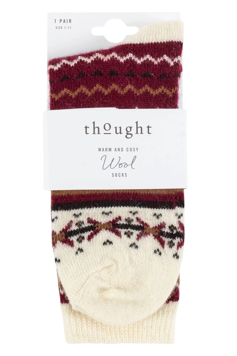 Cosy classic looks, made in a soft, quality wool rich blend for natural comfort, these men’s Thought Hendry Fairisle Wool Socks are thicker, medium gauge knits that will keep you warm and comfortable at all times. These patterned wool socks with their bands of colourful geometric motifs will perfectly team up with your favourite casual jeans and boots, shoes and even trainers for relaxed style days and those leisurely weekend walks.