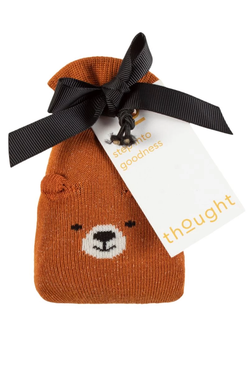 Do you know a man who likes to have a little fun with his fashion? If you do then these Thought Tanner Bamboo Animal Gift Bag Socks could be just the small gift you’ve been looking for. These whimsical, rather fun socks are burnt orange with a cute cartoon bear face… and with ears poking out from the cuffs.