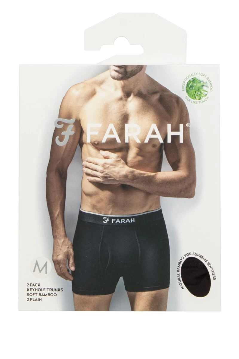 - Soft, skin-kind bamboo fibre; Inherent antibacterial and hypoallergenic properties; Tagless care label for zero irritation; Farah branded waist; 4cm long inseam; Machine washable at 40°C