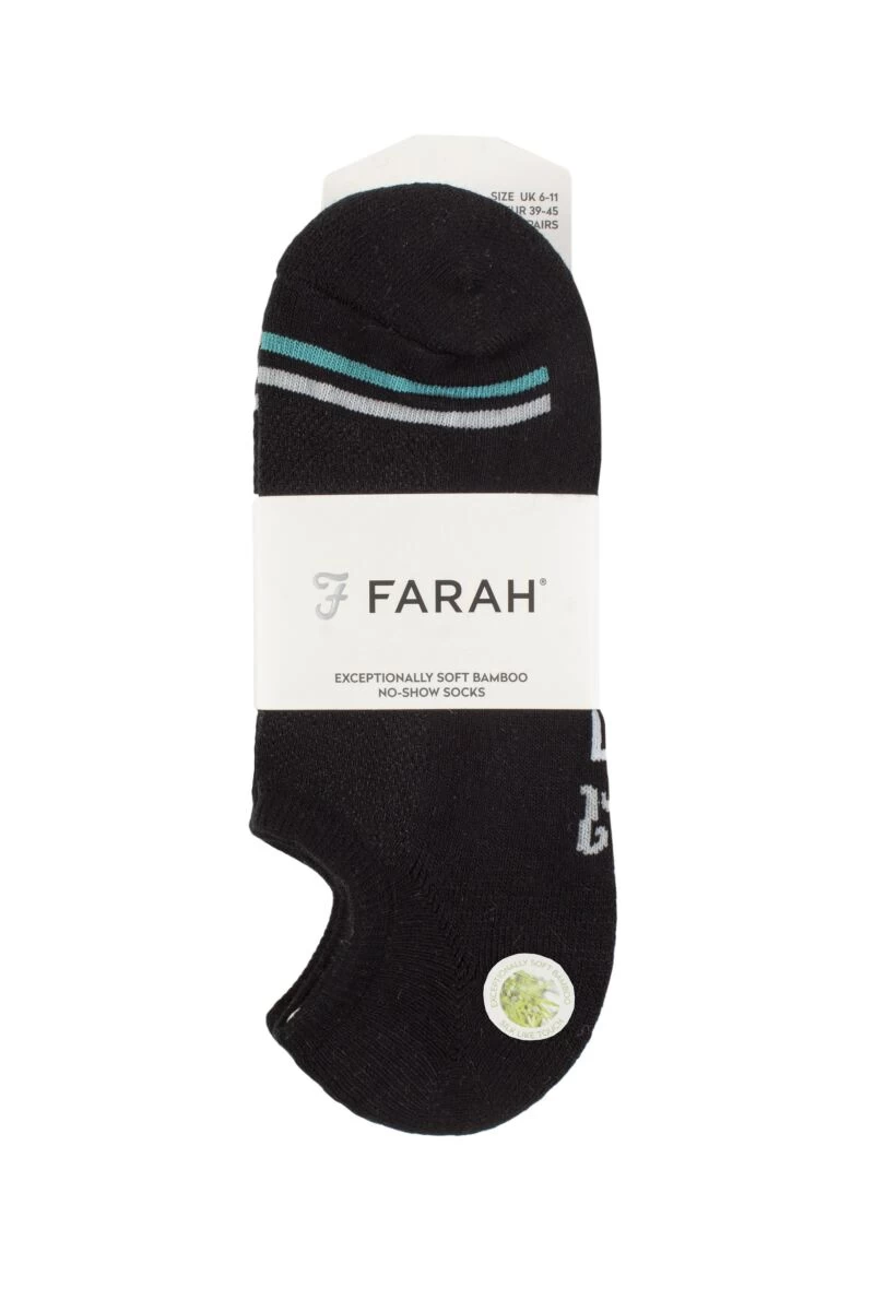 Farah Bamboo No Show Socks have silicone strips inside to grip the heels, preventing the socks from sliding underfoot during the day. Knitted from a soft, silky-touch bamboo-rich blend, they are inherently antibacterial and hypoallergenic, with cooling thermal regulation abilities.