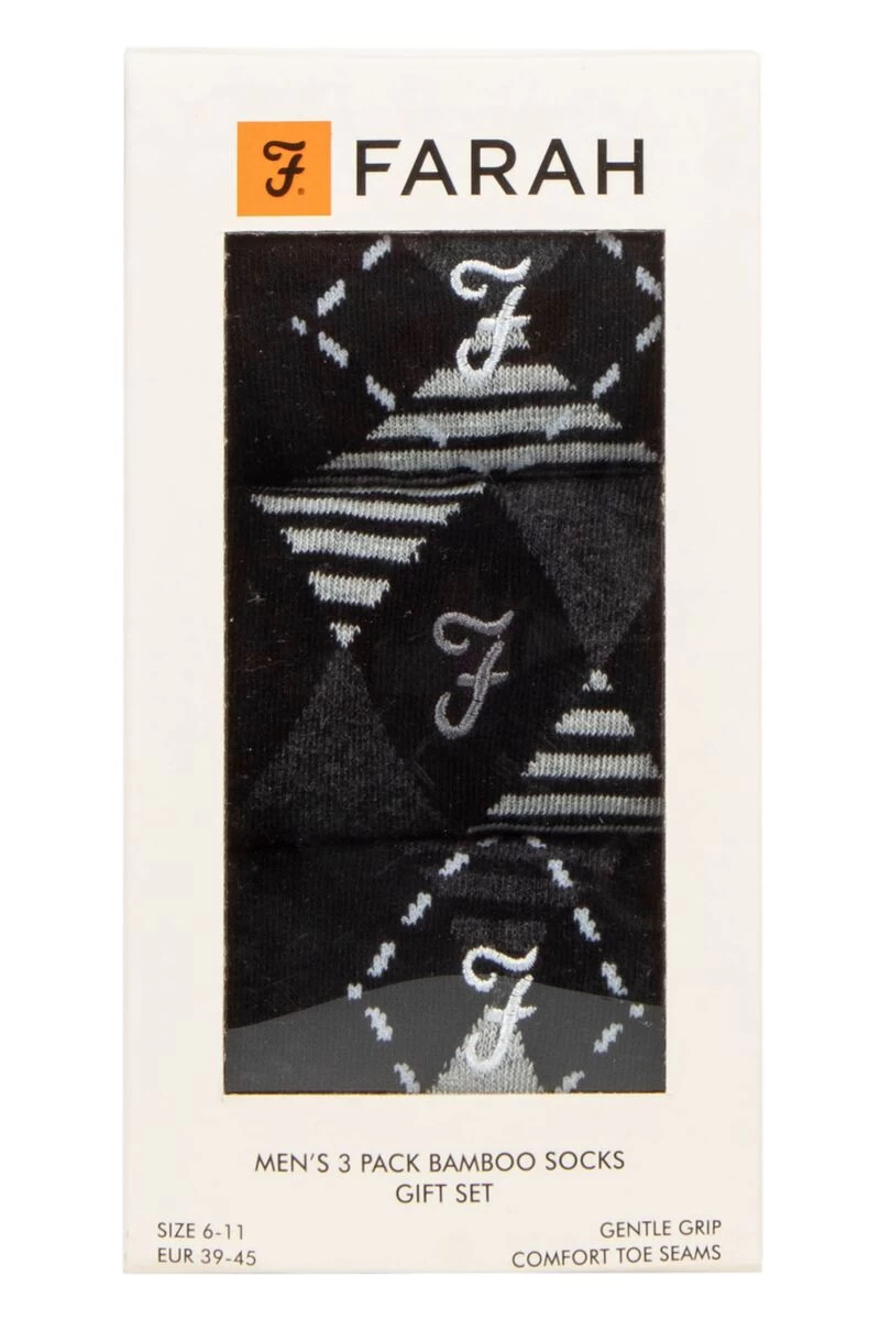 A fresh spin on a certified classic sock pattern comes in this triple pack of Farah Gift Boxed Argyle Cotton Socks. Farah has added stripes into the iconic diamond pattern of argyle to give it a style boost that will look great with almost all of your clothing choices, smart to casual.