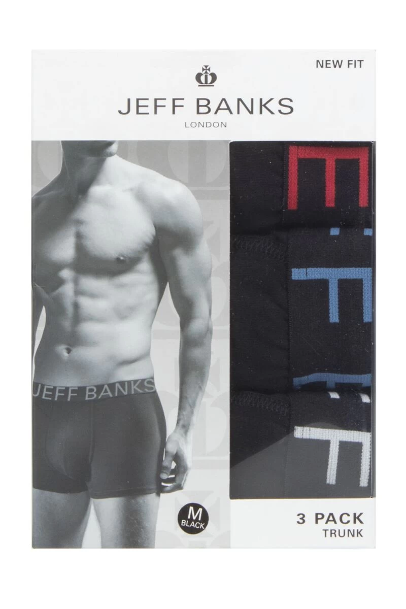 The waistbands of these three pairs of plain boxer trunks feature a fresh version of the Jeff Banks brand name, supersized around the waist in big block letters and come with a mix of colours across the set.