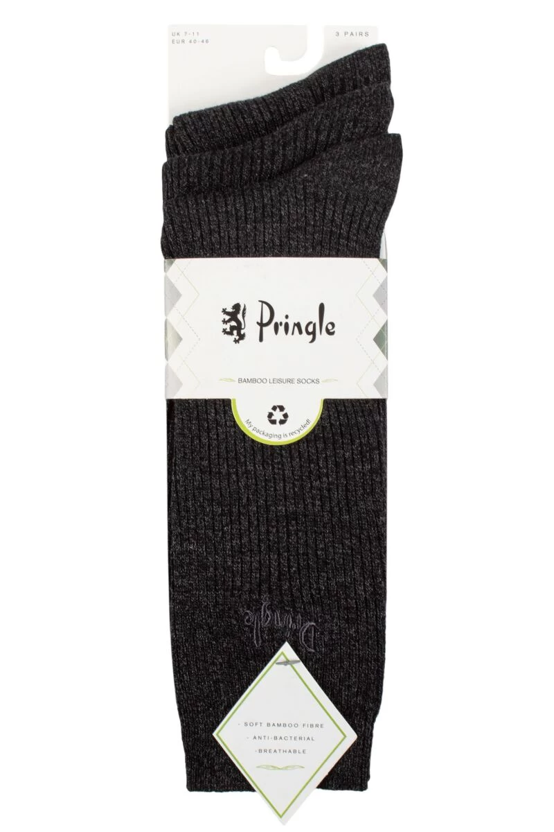 Made from breathable, super-soft bamboo for extra comfort and skin protection, and with a slim, ribbed detail knit to the legs and uppers of the feet, these triple pack sets of Pringle Bamboo Leisure Socks are ideal everyday wear for men. These bamboo-rich socks are a light, fine gauge with the fibre’s typical smooth and silky feel, gentle, non-irritating and kind to all skin types. Every pair has stylish Pringle signature embroidery included on the legs.