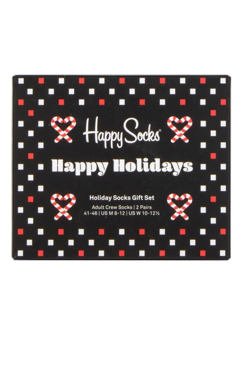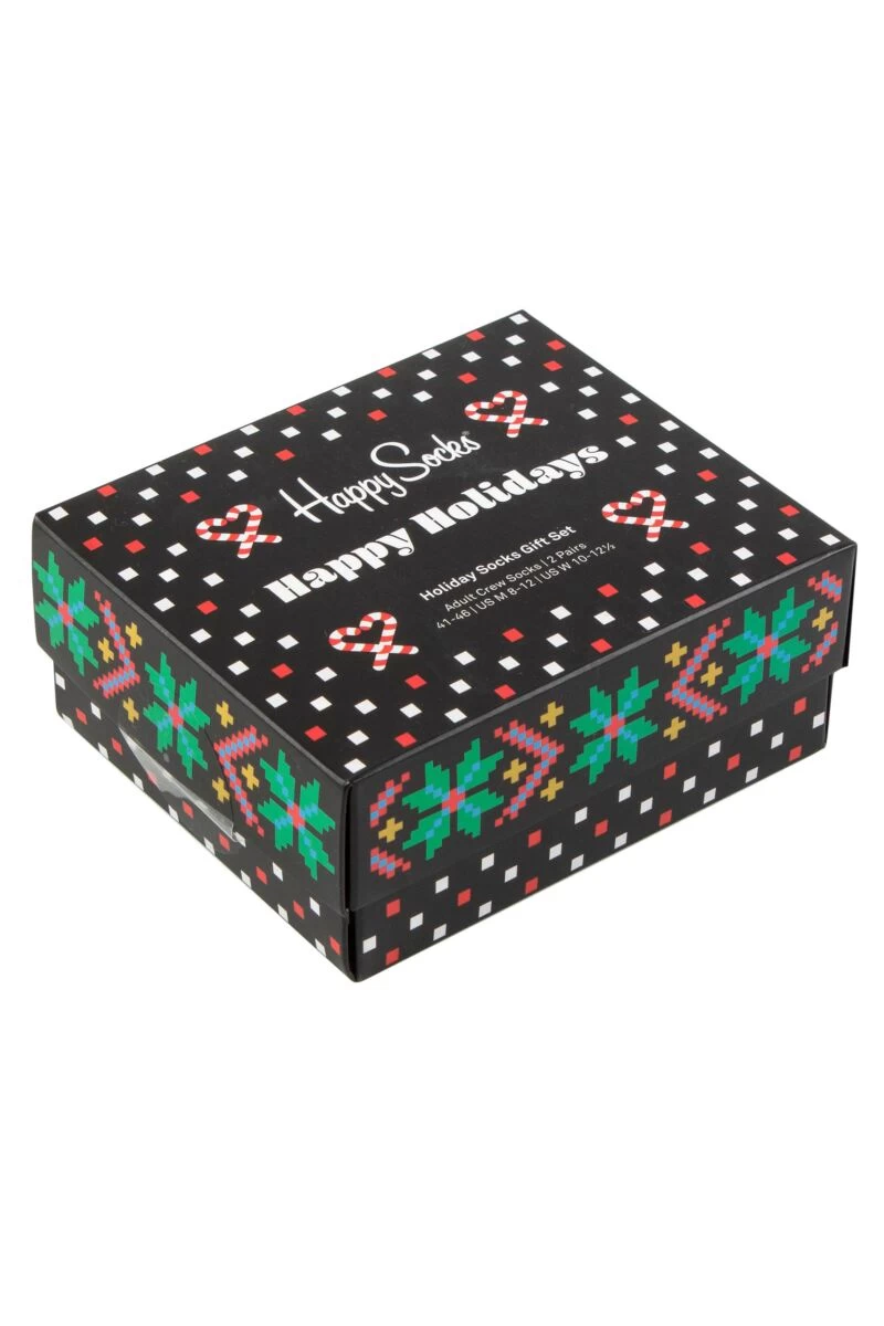 Throwing away the rule book when it comes to ātastefulā, this set of Happy Socks Ho Ho Ho Gift Boxed Socks are big fun, novelty designed Christmas socks perfect for anyone with a sense of seasonal humour ! Itās a two-pair pack, with one showing an array with neon-colour Christmas motifs in a black leg, and the other pair perhaps the loudest Xmas ugly jumper design youāve ever seen, super-colourful and including candy canes and roast turkeys (!) as part of the pattern!