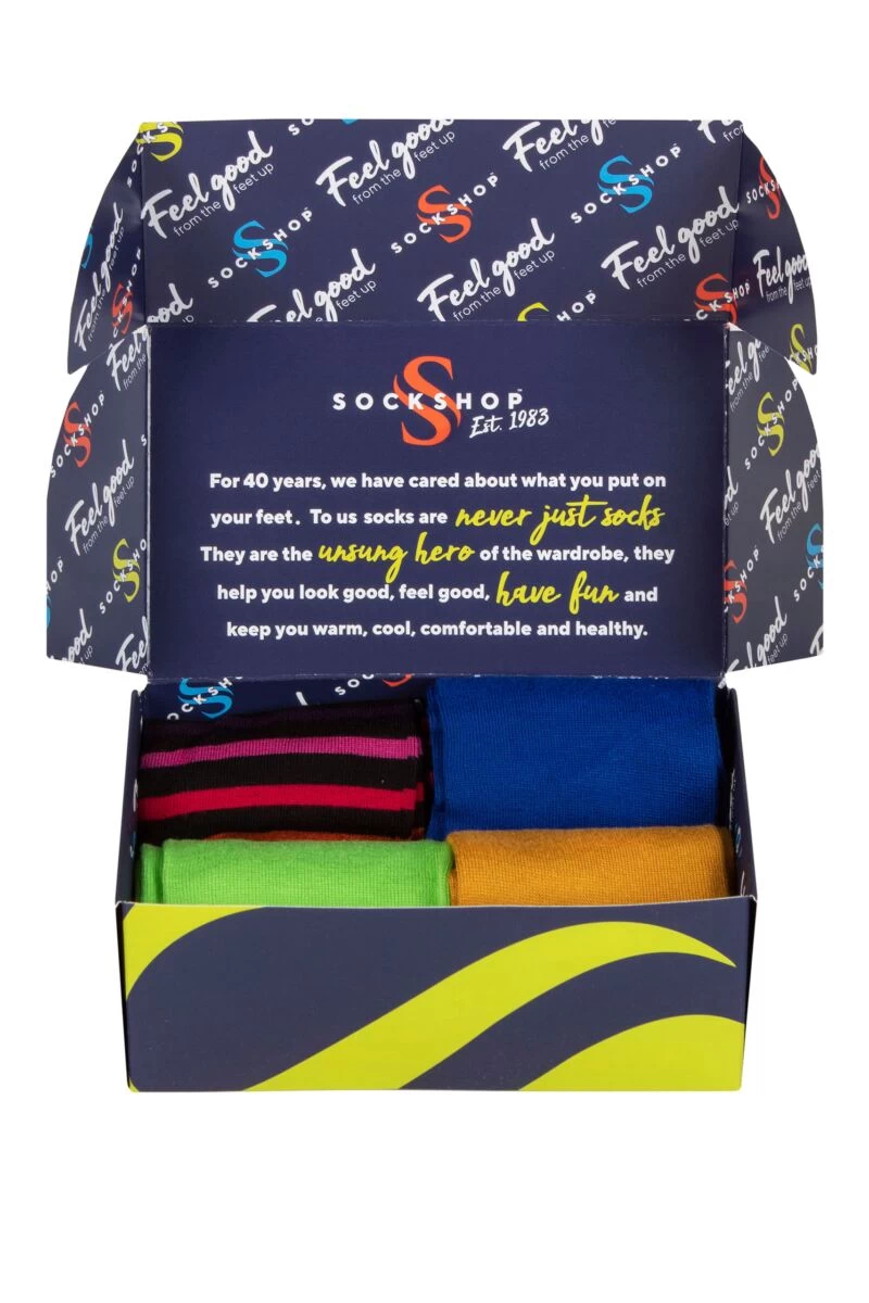 Did you know that 2023 marks the 40th anniversary of SOCKSHOPās existence? Join our big birthday celebration with this extra-special SOCKSHOP 40th Year Limited Edition Bamboo Gift Boxed Socks set! For this collection, weāve pulled together four pairs of our best, crew length menās and ladies bamboo socks, one for each decade weāve been around. The set comprises three plain (but definitely not dull!) pairs of socks in a carefully-chosen mix of bright, colourful shades, along with one of our favourite striped combinations.