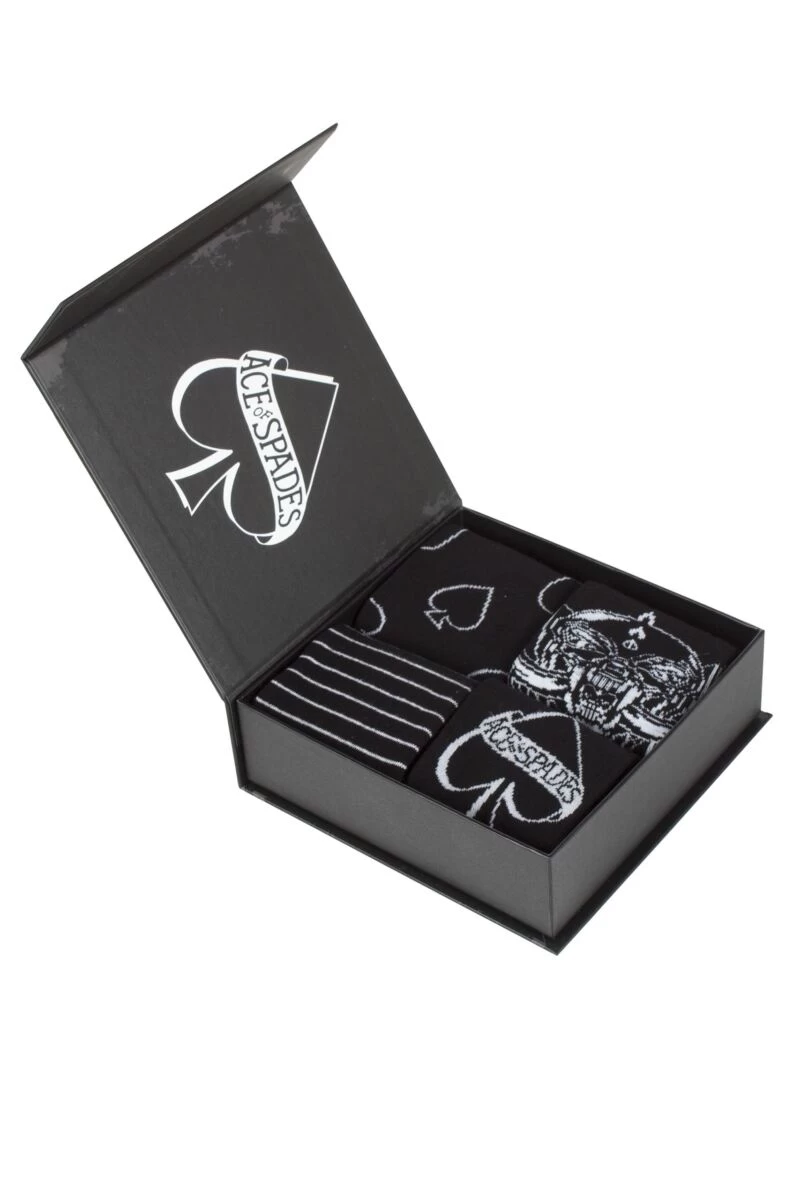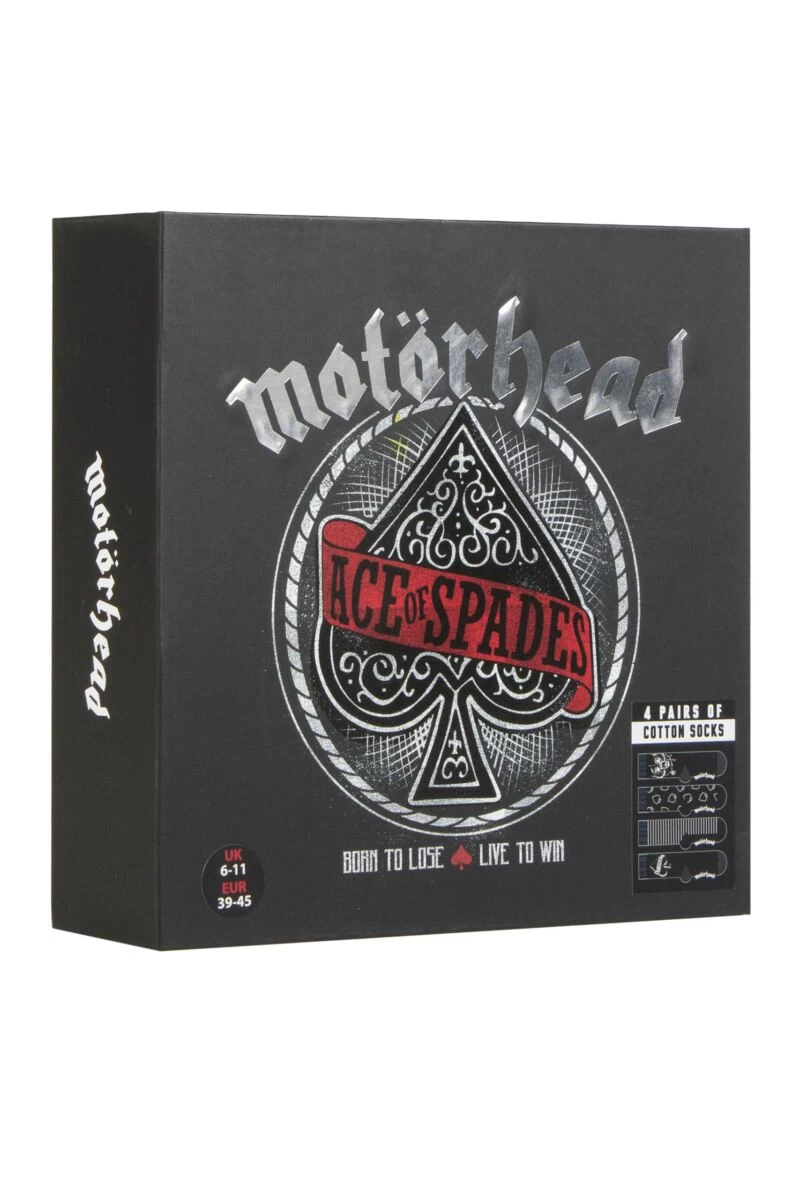 Socks so metal that you can almost hear them before you see them! Pull them up and wear them loud, these Motorhead Exclusive to SOCKSHOP Gift Boxed Cotton Socks are turned all the way up to 11! This superb box set is the best gift you could give to any fan of the late, great Lemmy and co, with four pairs of full-on Motorhead-themed socks. These lightweight, fine gauge socks come housed in a deluxe quality, metallic silver and spot-varnished “Ace of Spades” themed collector’s box with magnetic lid (so you can reuse it however you like).